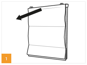 Látku sundejte z konzole (je připevněna na suchý zip). Rozvažte šňůrky a poznačte si výšku, kde musíte rolety opět přivázat